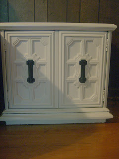 Another recent yard sale buy, was this little green nightstand. I loved the detail on doors and the price - $5